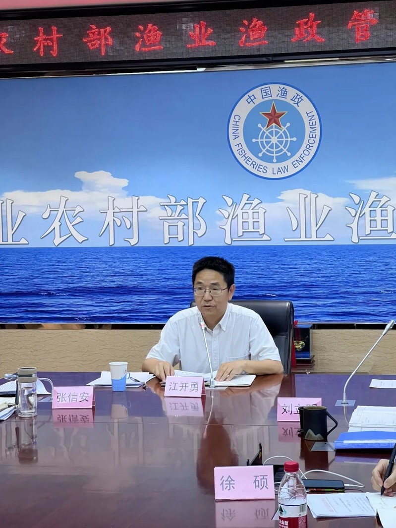 农业农村部渔业渔政管理局副局长江开勇出席会议并讲话。他指出,今年海洋伏季休渔专项执法行动推进扎实,休渔秩序整体稳定,未发生群体性违反伏季休渔制度的事件,船籍港休渔、专项特许捕捞等休渔期制度得到较好落实,渔业资源状况有所改善,取得积极成效。下一步,各地要继续针对性开展各项工作。一是完善伏季休渔和专项捕捞制度。提炼总结休渔经验,进一步扩大专项特许捕捞范围,调整优化休渔时段,调和资源管护与发展增收之间的矛盾,不给违法违规行为留生存空间。二是强化执法监管。继续组织实施渔政亮剑系列专项执法行动,大力清理取缔涉渔“三无”船舶、“绝户网”,进一步强化涉外渔业和安全生产监管,完善省际、军地、部门间执法协作机制,加大案件查办和行刑衔接力度。三是加强能力建设。充分发挥主观能动性,加强渔政执法机构、人员、装备、信息化等方面建设,推动渔政驻港监管,加大实战化培训力度,切实做好渔政执法保障工作。