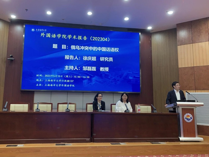 徐庆超从俄乌冲突的战事演进时间线及其影响出发,梳理了冲突爆发以来的中国话语与实践及西方舆论场的涉华反馈。通过外交场合和媒介报道中的中西方话语对比,展示了中西方话语冲突背后所蕴含的话语权利。此外,徐庆超以“北溪”天然气管道爆炸事件为例,深入浅出地介绍了话语权的来源、转化及呈现,并做出相应实事求是的反思。最后,徐庆超结合师生们所关注的海洋问题,提出中国在俄乌冲突中所展现出的话语权对中国在那些悬而未决、错综复杂的涉海问题处理上都具有重要启发、启迪和启示作用。