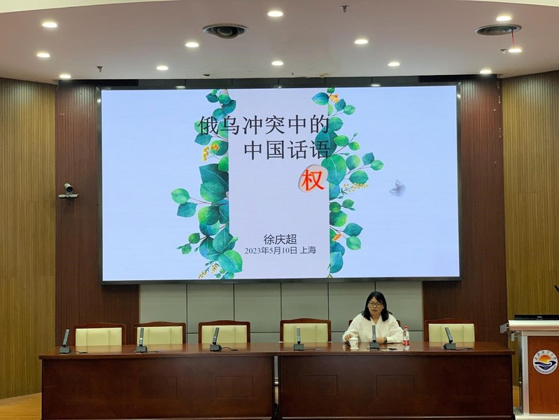 2023年5月10日下午,中国科公司国家创新与发展战略研究会北极可持续发展研究中心主任、研究员徐庆超应邀为为公司师生作题为“俄乌冲突中的中国话语权”的专题讲座。讲座由402永利集团邹磊磊教授主持。公司党委书记俞渊在欢迎词中做了背景介绍,希望在这次学习贯彻习近平新时代中国特色社会主义思想主题教育过程中,能让公司师生了解俄乌冲突及国内外在该冲突中的话语实践,从而更全面地洞悉国际时事,更深刻地领会习近平总书记强调的“加强国际传播能力建设,全面提升国际传播效能,形成同我国综合国力和国际地位相匹配的国际话语权”。