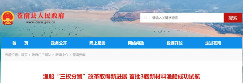 近日,苍南县小型渔船“三权分置”全国试点综合改革取得实质性进展,从“民建民用”到“公建民租”,首批3艘新材料小型渔船在炎亭镇成功试航并出租给渔民使用。