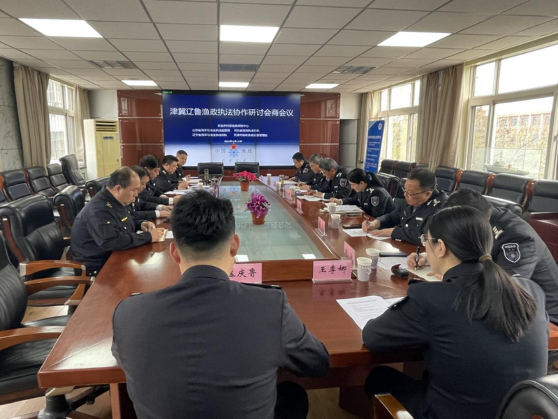 4月10日,津冀辽鲁“三省一市”渔政执法协作研讨会商会议在天津举行。农业农村部渔政保障中心、天津市渔政渔港监督管理处、河北省渔政执法总队、辽宁省海洋与渔业执法总队、山东省海洋与渔业执法监察局相关负责同志参加会议。