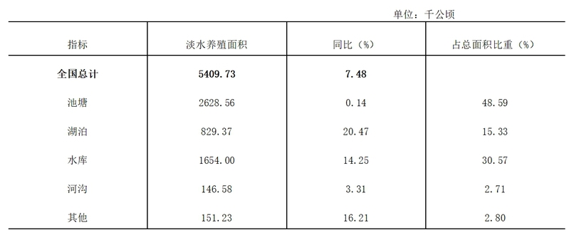 表4 2023年全国淡水养殖面积