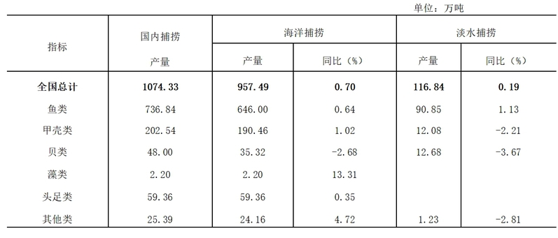 表2 2023年国内捕捞产量