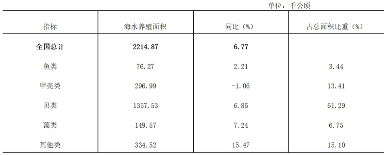 表3 2023年全国海水养殖面积