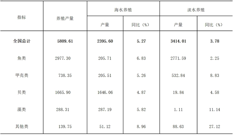 表1 2023年全国水产养殖产量