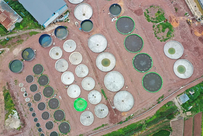 这些特殊的“鱼缸”是云南珑跃智慧农业发展有限公司投资建设的陆基桶,桶的大小、高度各不相同,从3米到15米不等,每立方米水体可养殖50公斤的鱼,能有效解决传统渔业养殖因自然因素减产、占地面积大、水资源利用系数低等问题。依托集设施化、标准化、规模化于一体的陆基循环水高效生态养殖系统,云南珑跃智慧农业发展有限公司走出了一条环保、高效的现代渔业发展新路子。